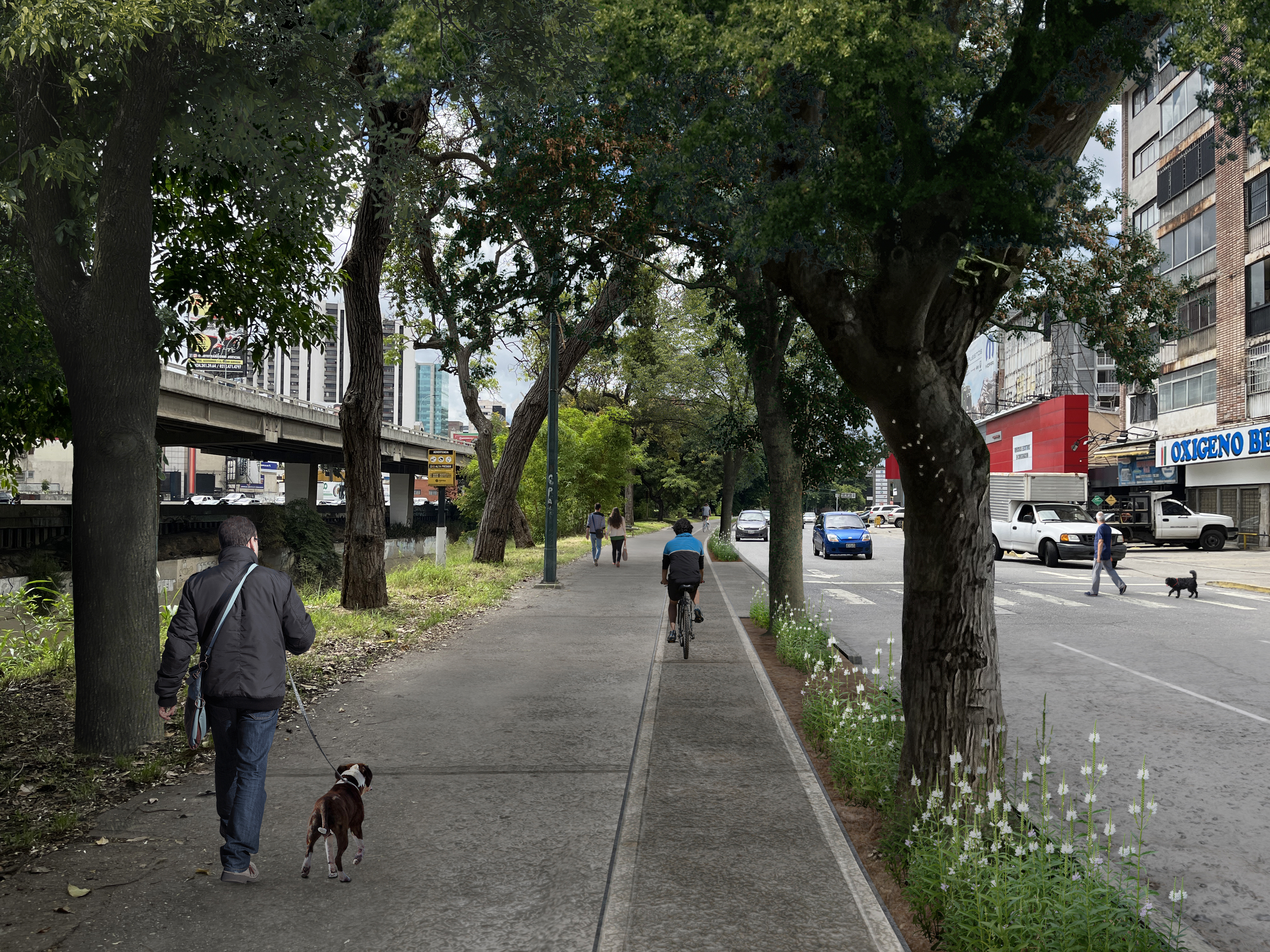 En 2023, surgió la oportunidad de comenzar a articular intervenciones concretas, centrándose en un segmento de 1,8 km dentro de un tramo de espacio público de 16 km a lo largo de la ribera del río. En 2025, lo que comenzó como un proyecto de investigación experimental se materializará, ya que la primera fase del proyecto comenzará en mayo de 2025 con el apoyo institucional de la Ciudad de Baruta y el apoyo financiero de CAF, Banco de Desarrollo de América Latina y el Caribe, Banesco y Fospuca. El proyecto contempla la transformación de un carril de una vía de 4 carriles en un corredor de espacio público con 150 árboles, un biofiltro, una ciclovía, un sendero peatonal, bancos e iluminación. Los escombros de la demolición de asfalto se reutilizarán como grava en el proyecto, lo que reducirá significativamente los residuos de construcción, y el drenaje de filtración ayudará a filtrar el agua al suelo y a recuperar los acuíferos. La nueva infraestructura que pueda acercar a los vecinos y ciudadanos al río contribuirá a crear conciencia y a la urgencia de su saneamiento y renaturalización definitivas.