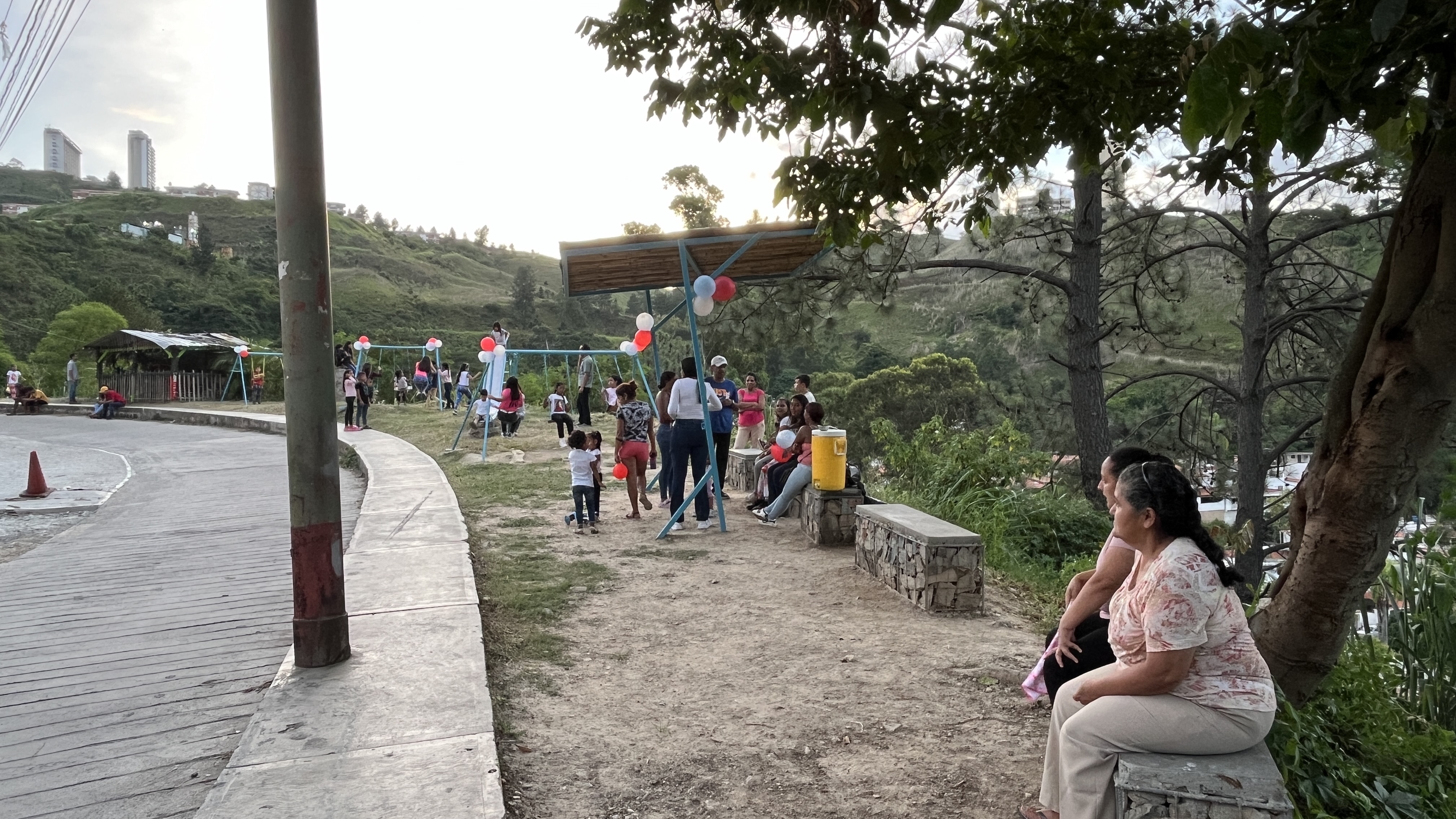 Durante muchos años, los residentes del barrio Picapiedra, adyacente a Piedra Azul, han reservado un trozo de terreno a lo largo de la carretera principal con la esperanza de que algún día se convirtiera en parque. Cuando conocimos sus intenciones y vimos el inventario de columpios y toboganes que ya tenían. Decidimos unir esfuerzos y ayudarlos a concretar sus intenciones. Comenzamos levantando y midiendo el sitio. Luego armamos una propuesta coherente, basada en sus pensamientos y proyecciones. El parque está compuesto por varios elementos que utilizan materiales reciclados, sencillos y disponibles como perfiles de acero de bambú y hormigón.